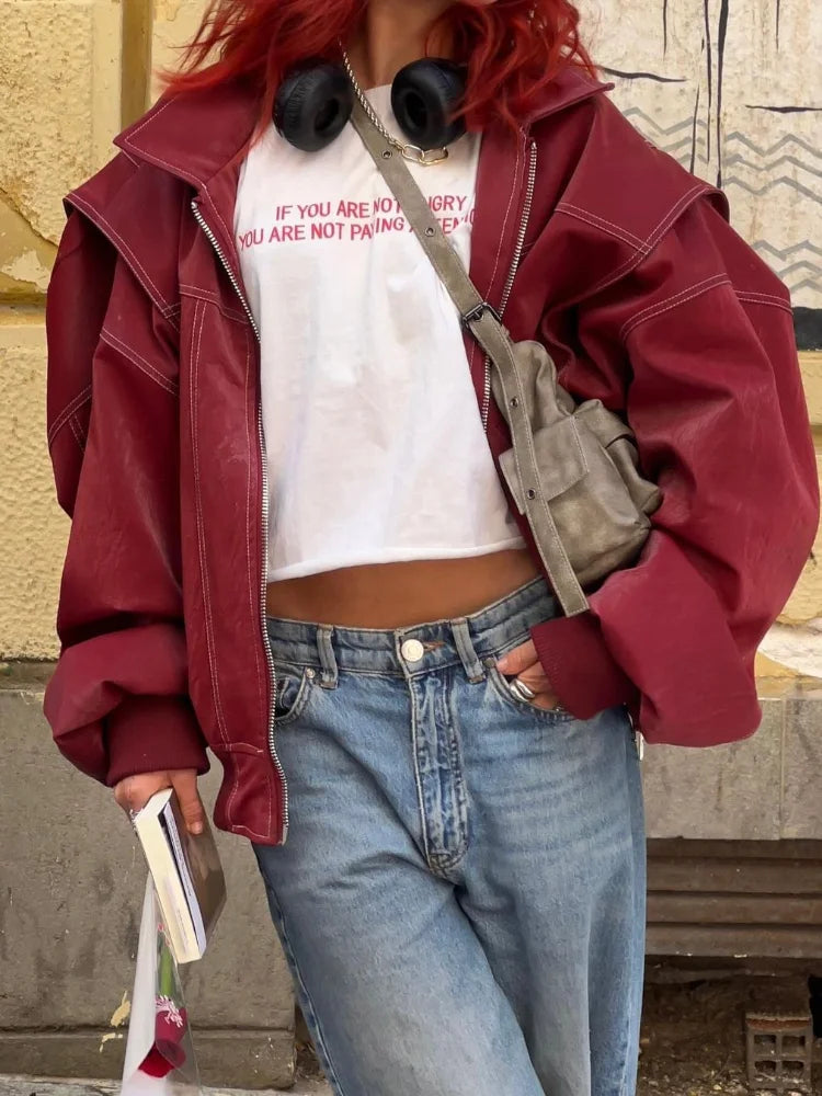 Casual Zipper Solid Retro Lapel Long Sleeved Short Coats
