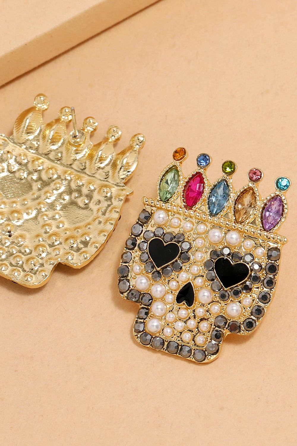 Increase quantity for Colorful Rhinestone Pearl Skull Earrings