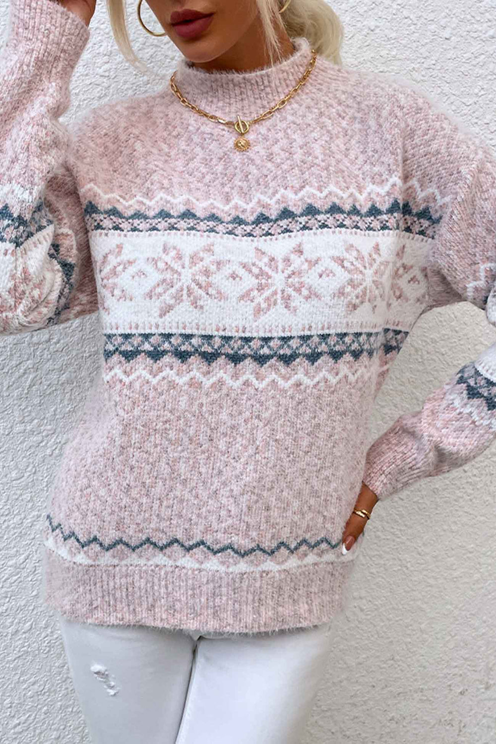 Increase quantity for Contrast Mock Neck Snowflake Sweater