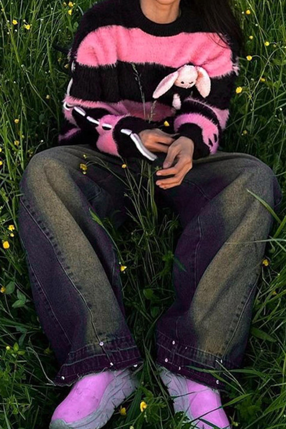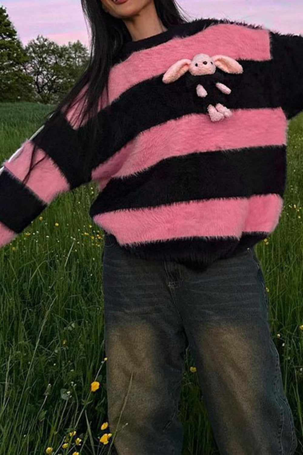 Increase quantity for Contrast Pullover Rabbit Plush Doll Sweater