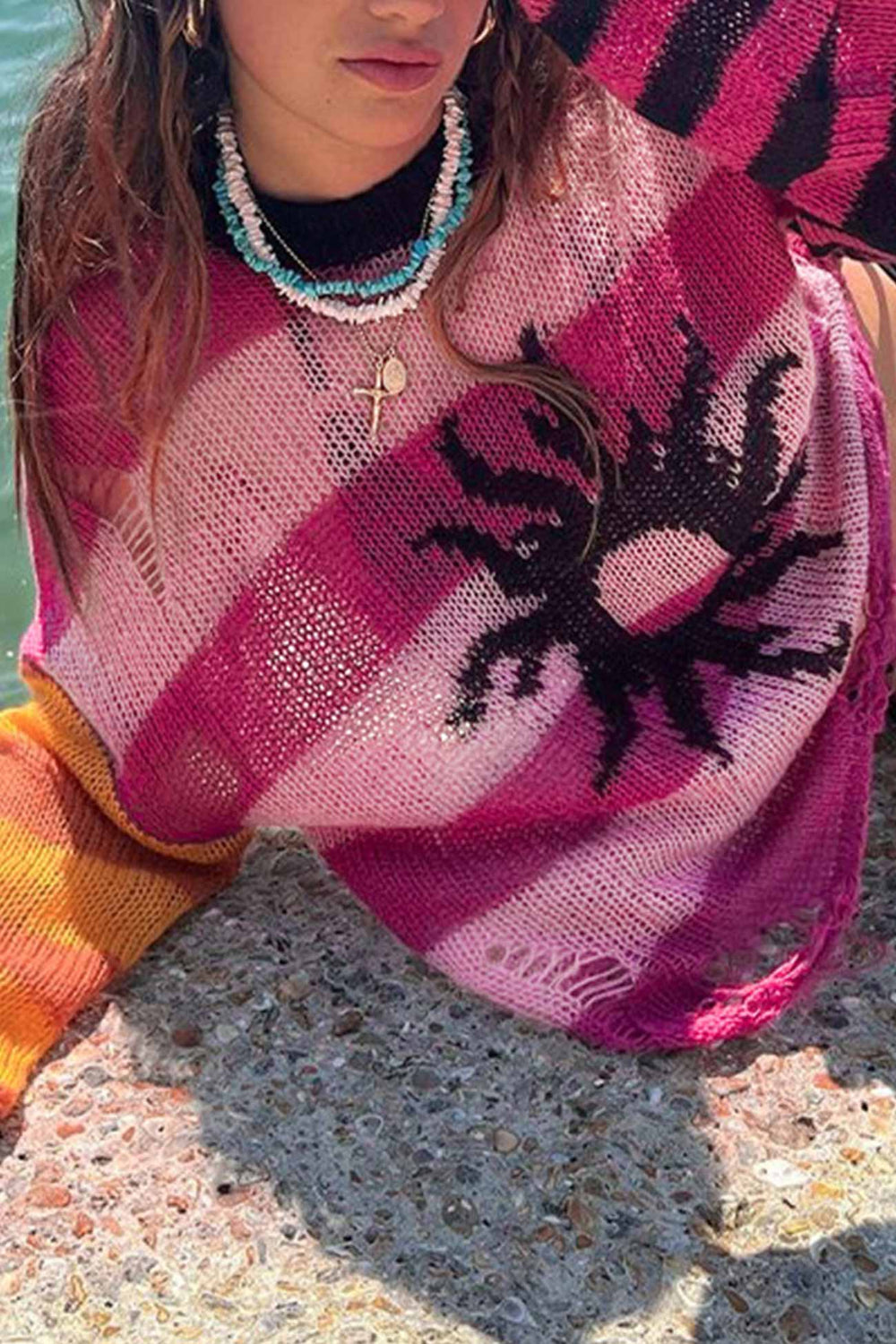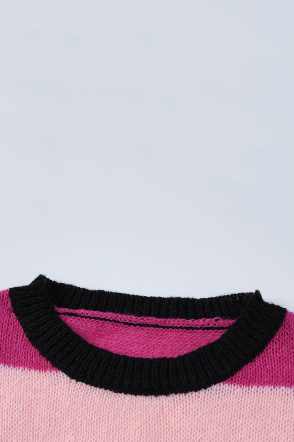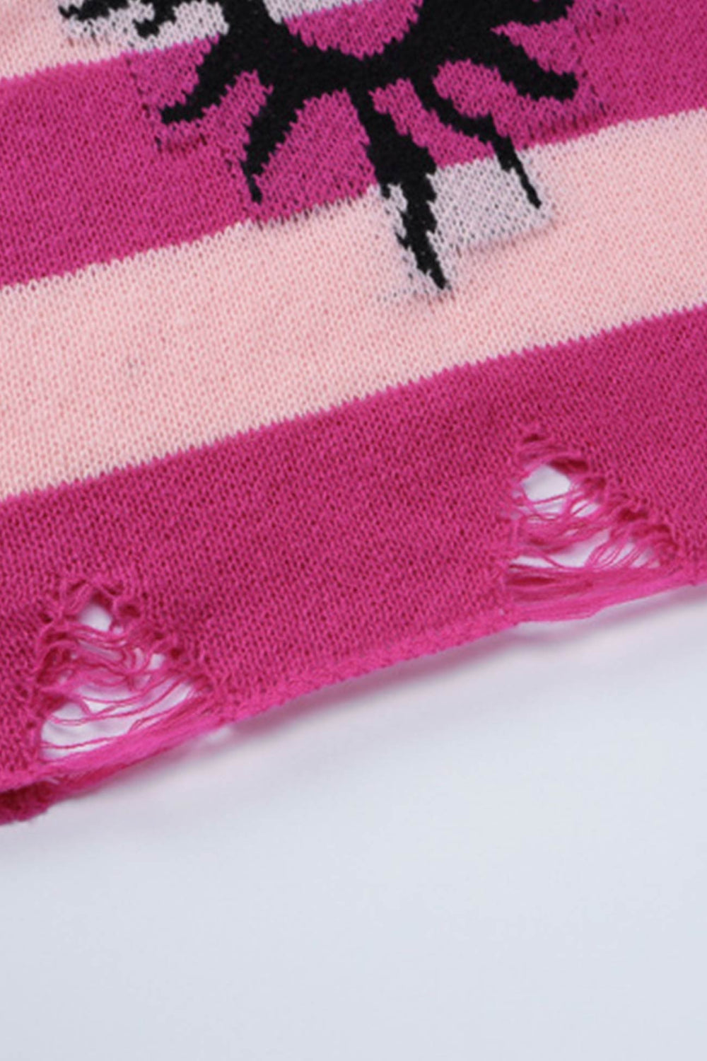 Increase quantity for Contrast Striped Patchwork Distressed Sweater