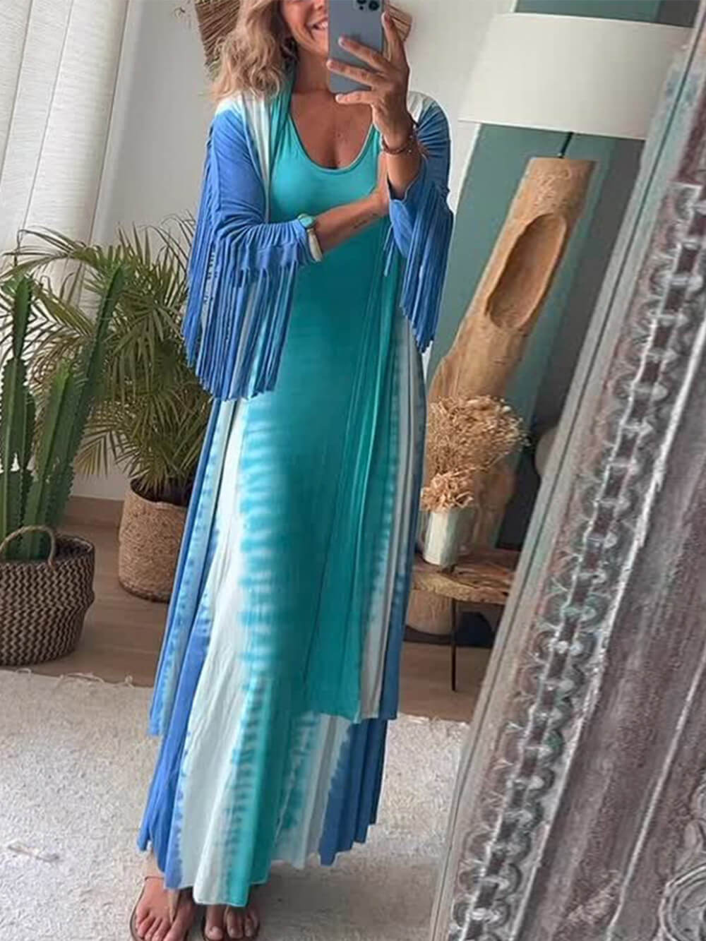 The standout feature of this cardigan is its fringed detailing. Delicately placed along the hem and cuffs, the fringes create a playful and bohemian vibe that effortlessly elevates your look. They sway gracefully with your movements, adding a sense of movement and flair to your ensemble.