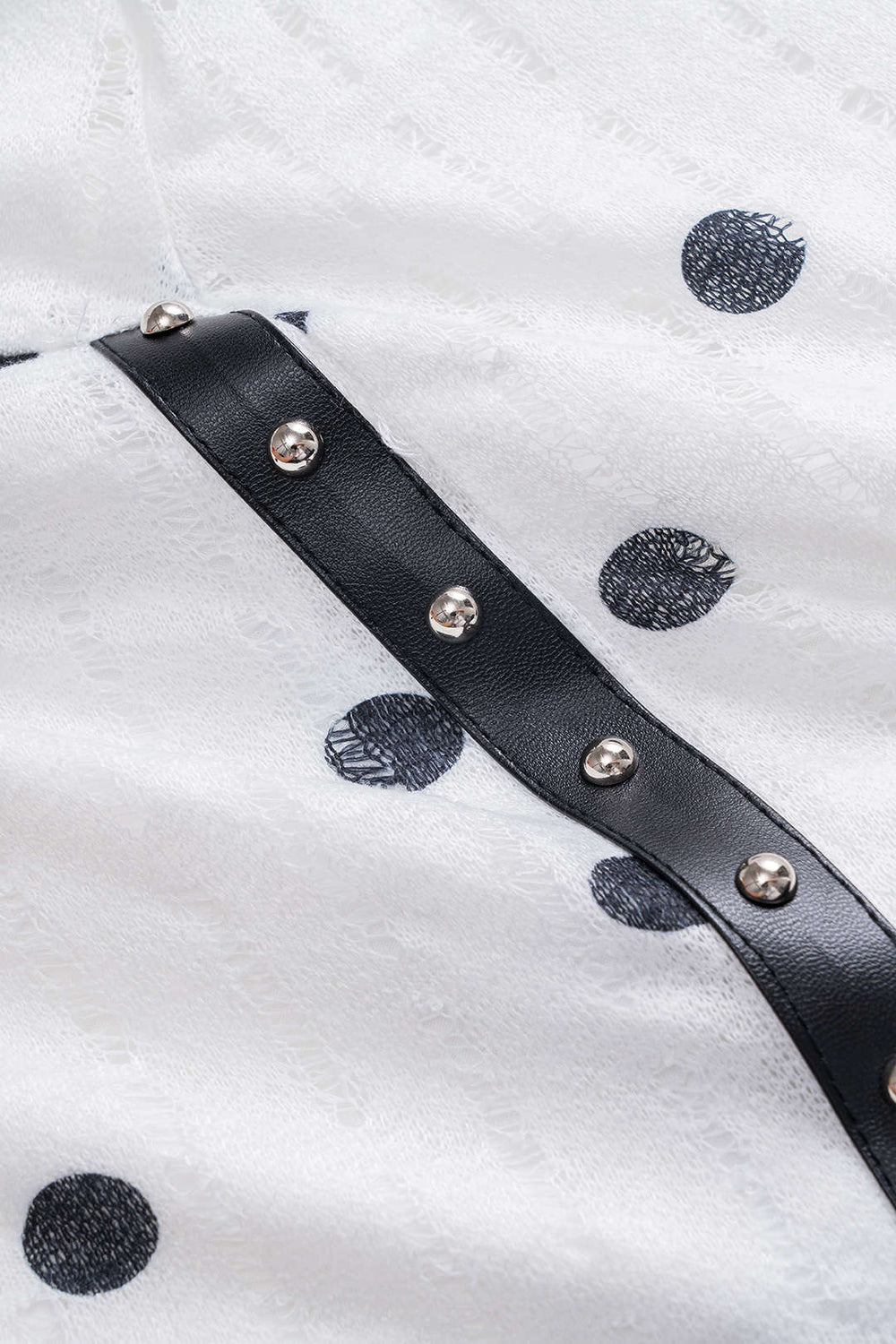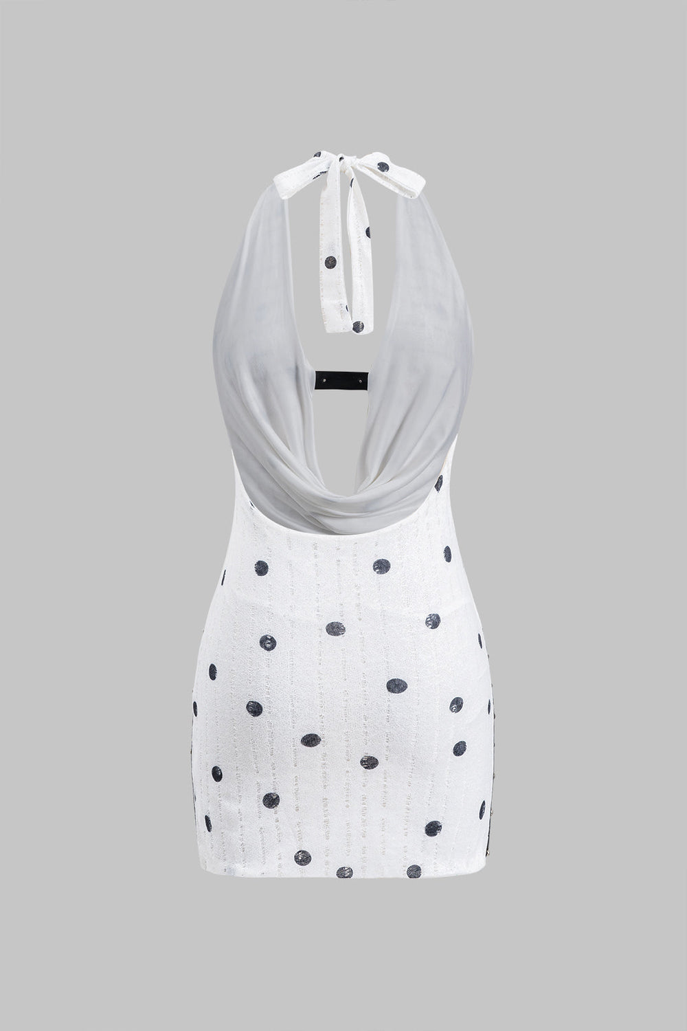 Polka Dots Pattern Lace Ruched Halter Neck Tie Up Backless Mini Dress
