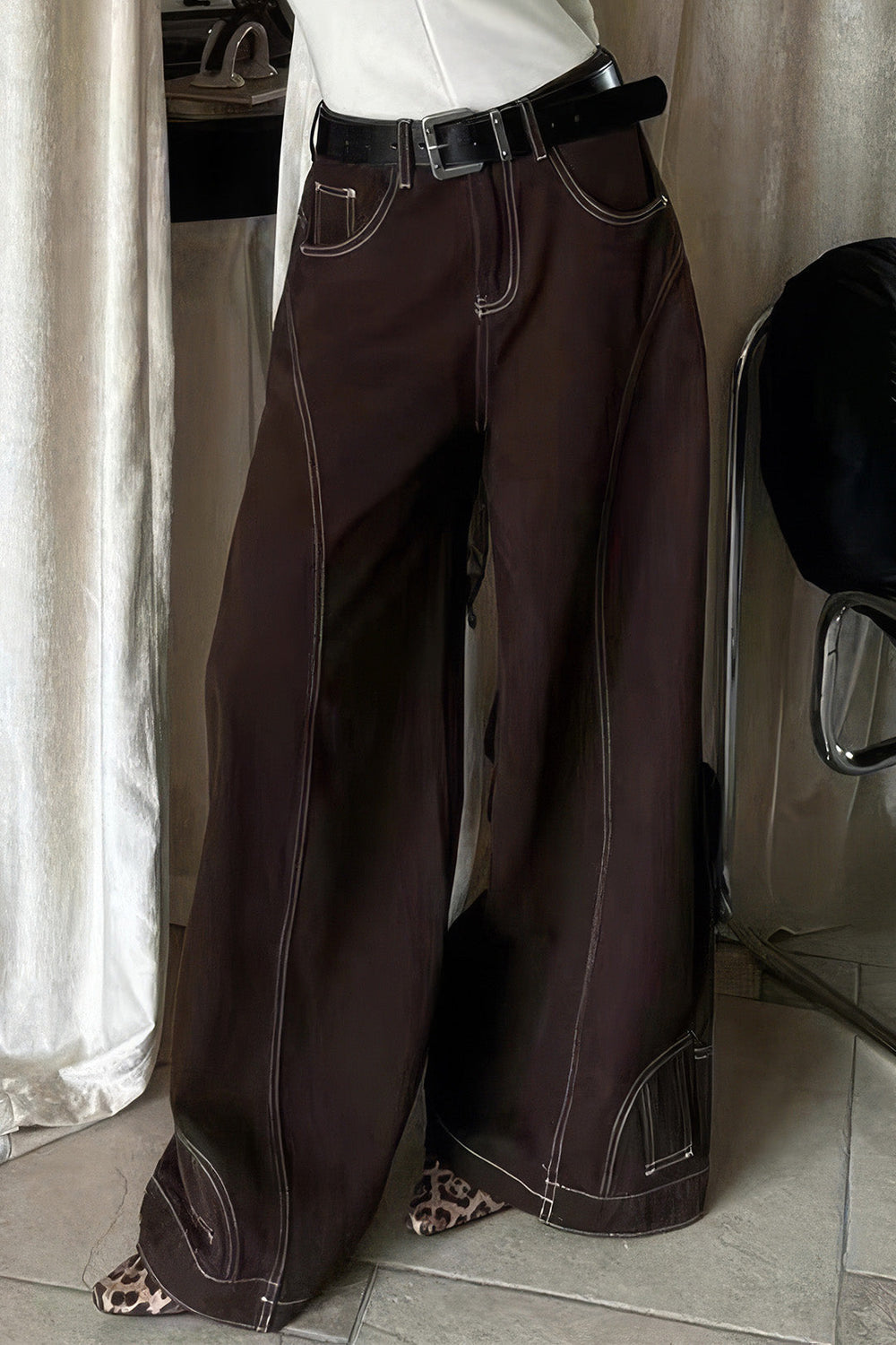 Denim Seamdetail High Waist Straight Leg Jeans