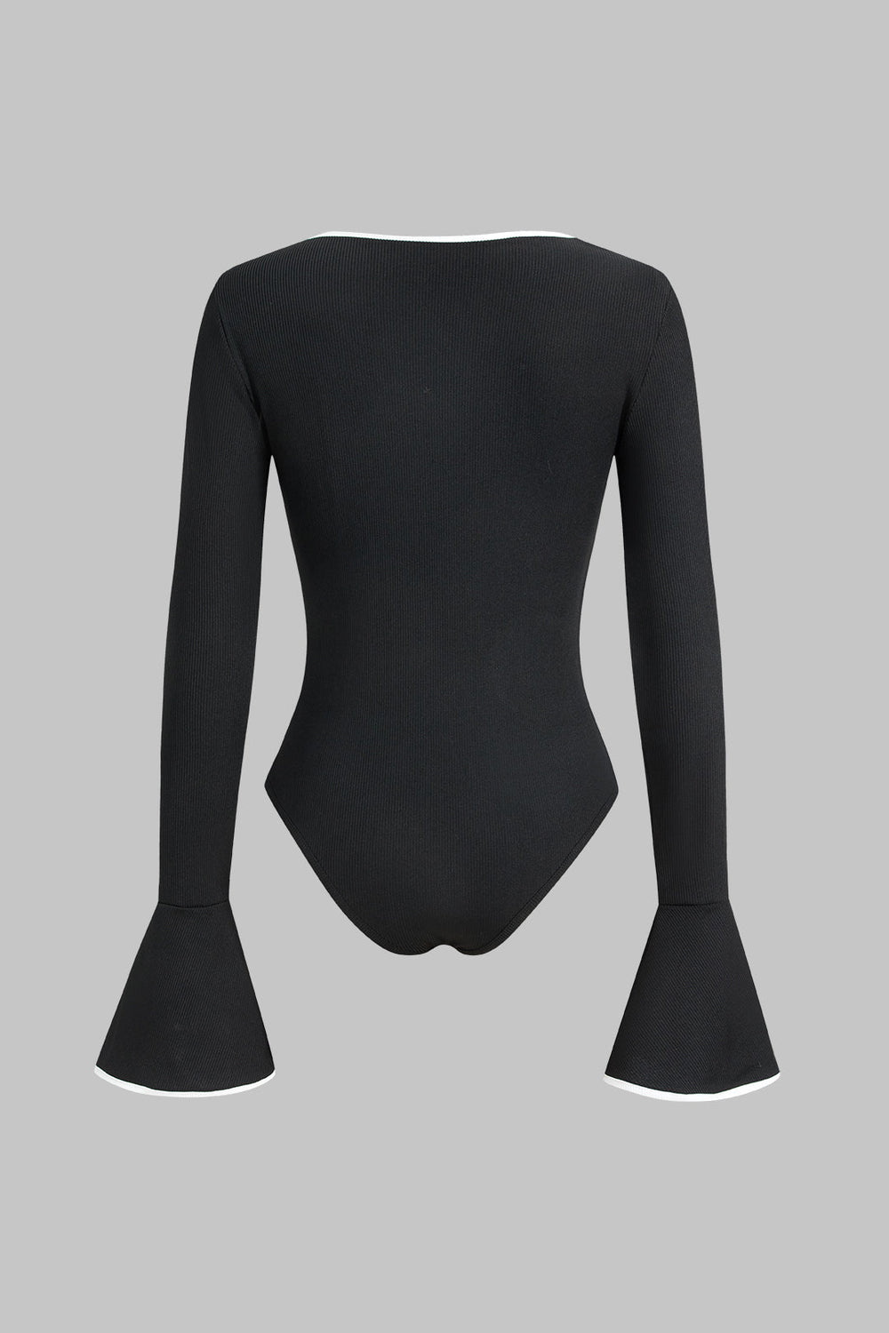 Contrast Binding Long Sleeve Bell Sleeve Bodysuit
