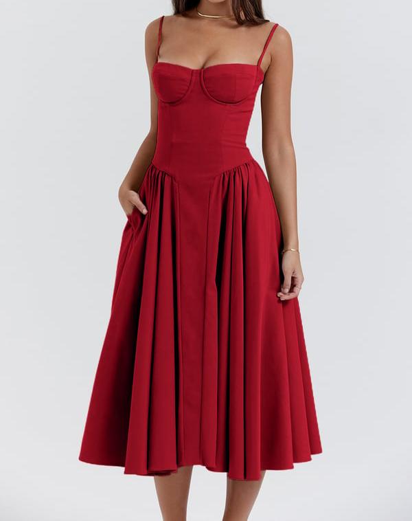 Introducing the Carolyn Sleeveless Corset Midi Dress where contemporary glamour meets a touch of allure. This stunning midi dress features a chic sleeveless design and a flattering corset bodice. perfect for any elegant occasion. Crafted from high-quality. structured fabric. the Carolyn dress ensures you feel confident and stylish whether attending a cocktail party or a sophisticated dinner. Elevate your wardrobe with this versatile piece that effortlessly blends modern style with classic sophistication.