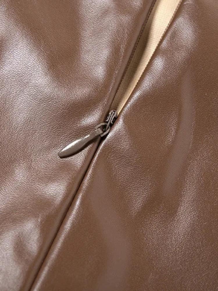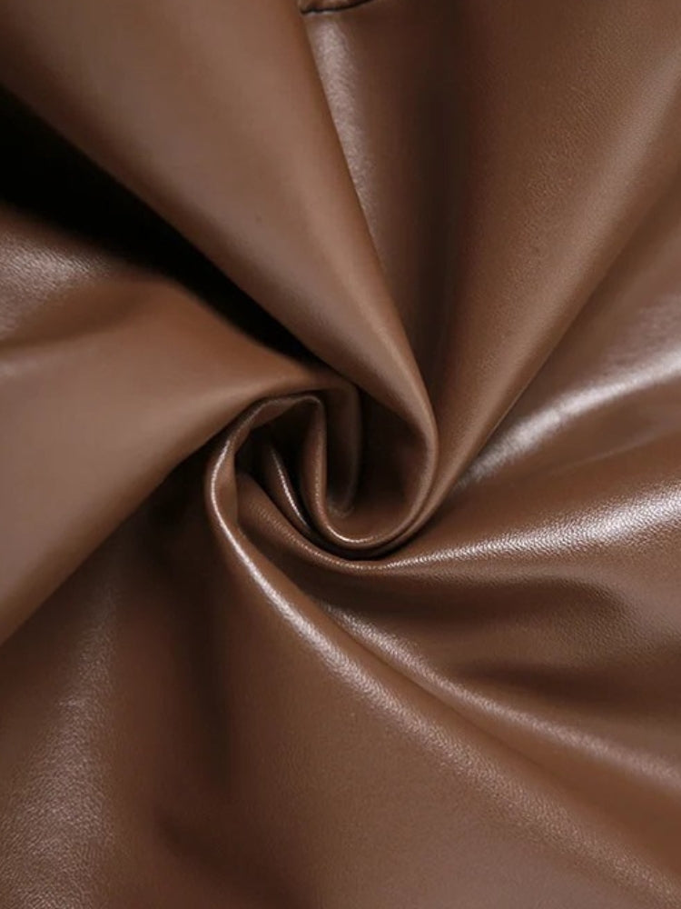 Make a bold entrance in this faux leather mini dress, styled with a body-hugging fit and floral accents. The asymmetric rhinestone chain strap adds serious glam, while the shiny brown finish gives off edgy night-out vibes. Ideal for parties, club looks, or baddie moments.
