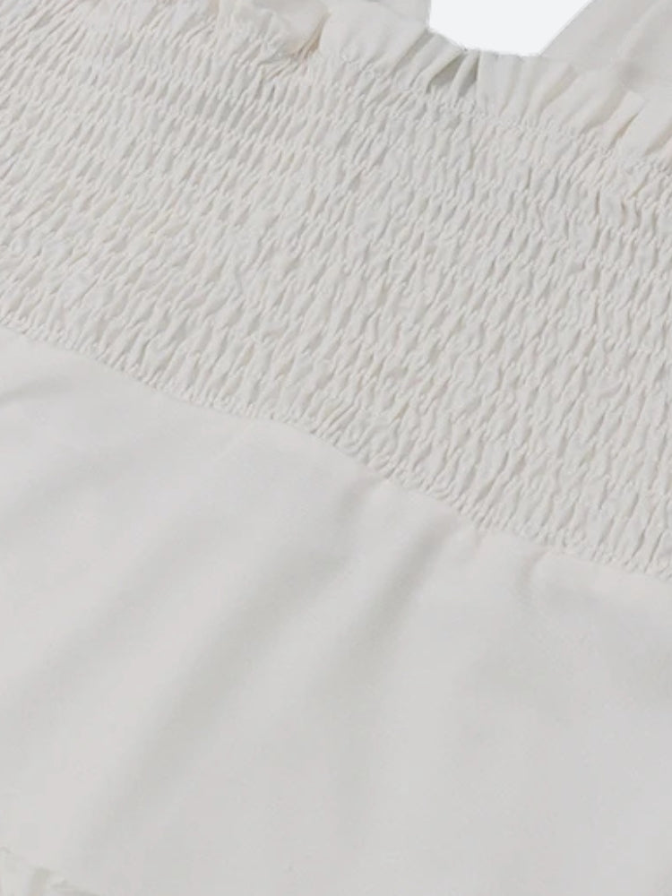 This coquette halter neck mini dress with layered ruffles and a flirty silhouette is ideal for beach days or poolside parties. It's breezy, comfortable, and highlights a playful look.