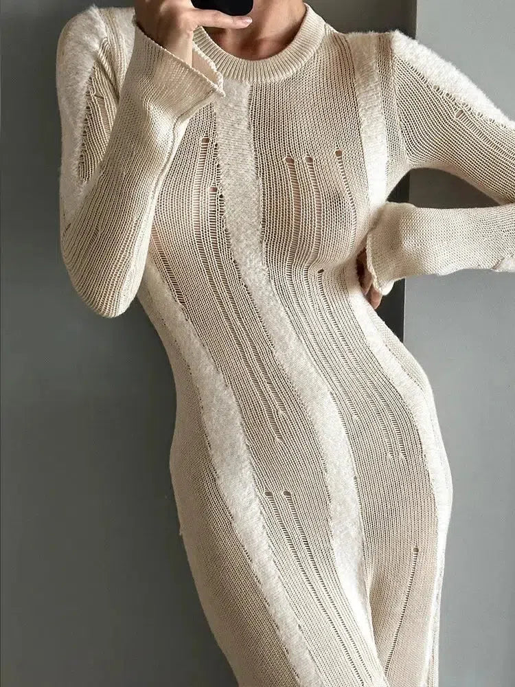 This chic maxi dress in soft beige exudes effortless style with its distressed crochet design. Perfect for layering over swimwear or pairing with statement accessories, it offers a unique blend of casual elegance and boho charm.