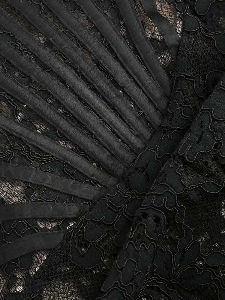 This strapless lace mini dress creates a sultry silhouette for club nights or fancy events. A corset-style bodice and delicate draping lend a youthful, alluring vibe.