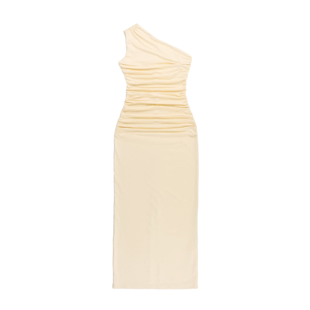 Our Zuma Assymetrical Dress is an elegant bodycon maxi dress featuring one shoulder neckline