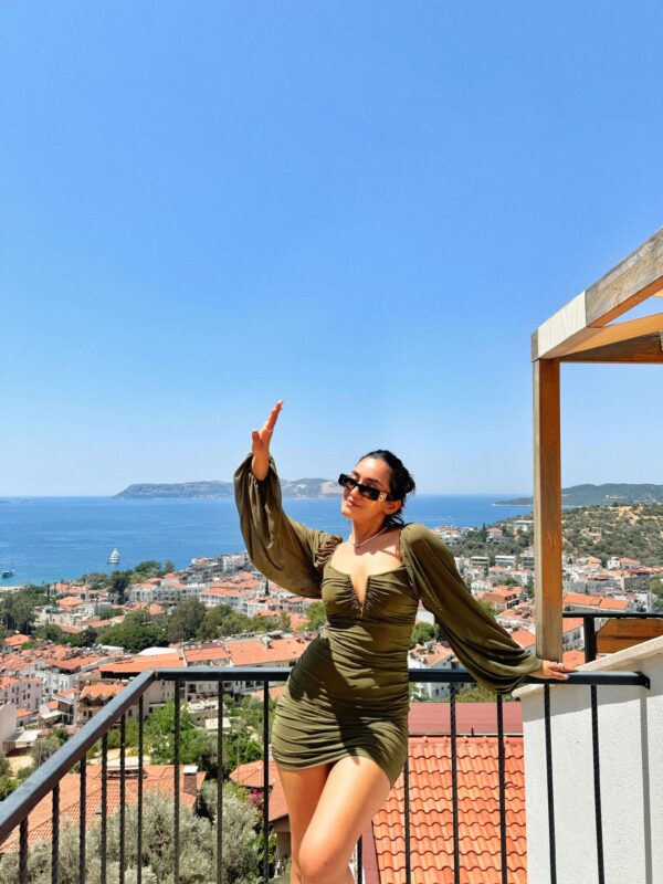 Our Shay dress is the perfect pinterest inspired outfit. The mini dress features puffed sleeves and ruched detailing.Be it a vacation or a brunch you can style it wherever you like.