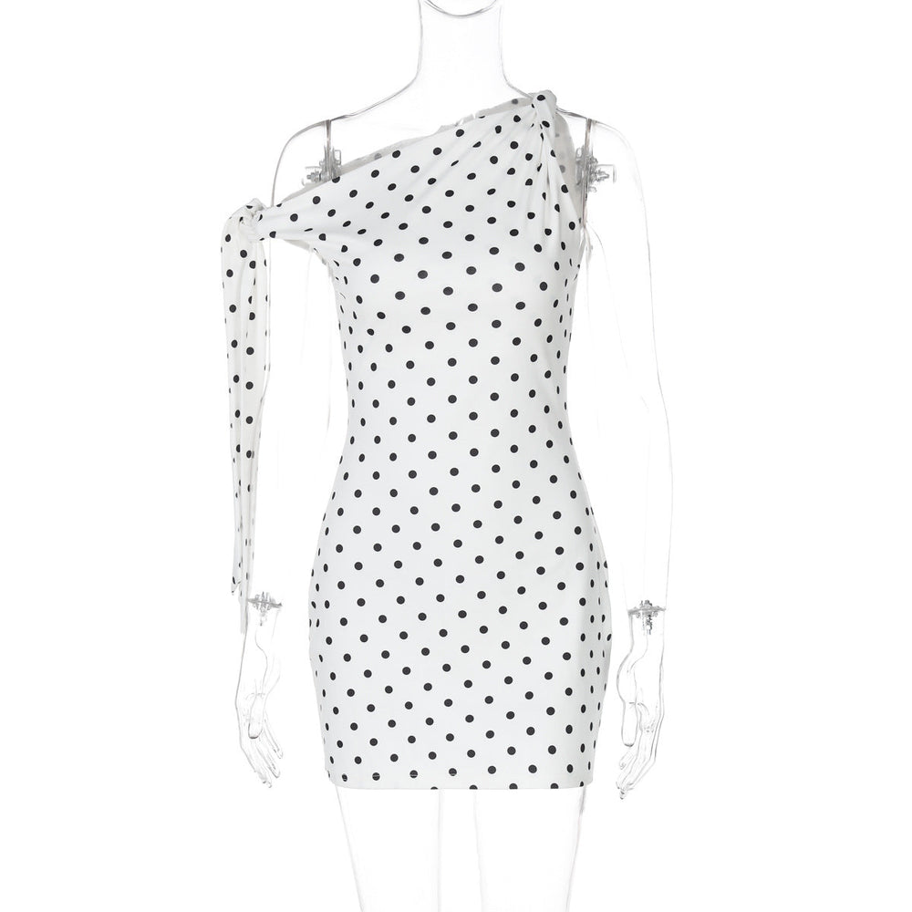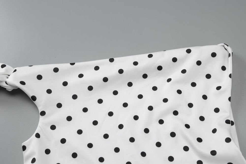 Love for polkas and one shoulder dress going strong with our Alonso Mini Dress.