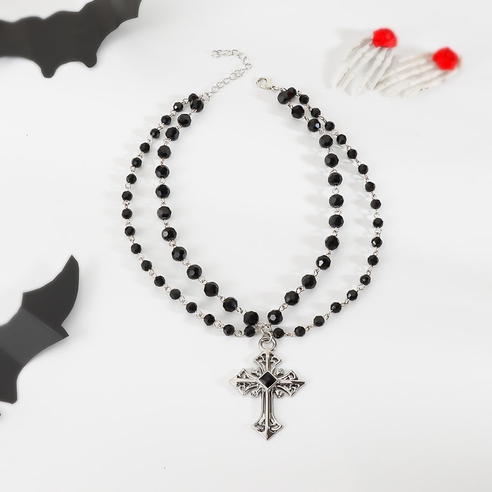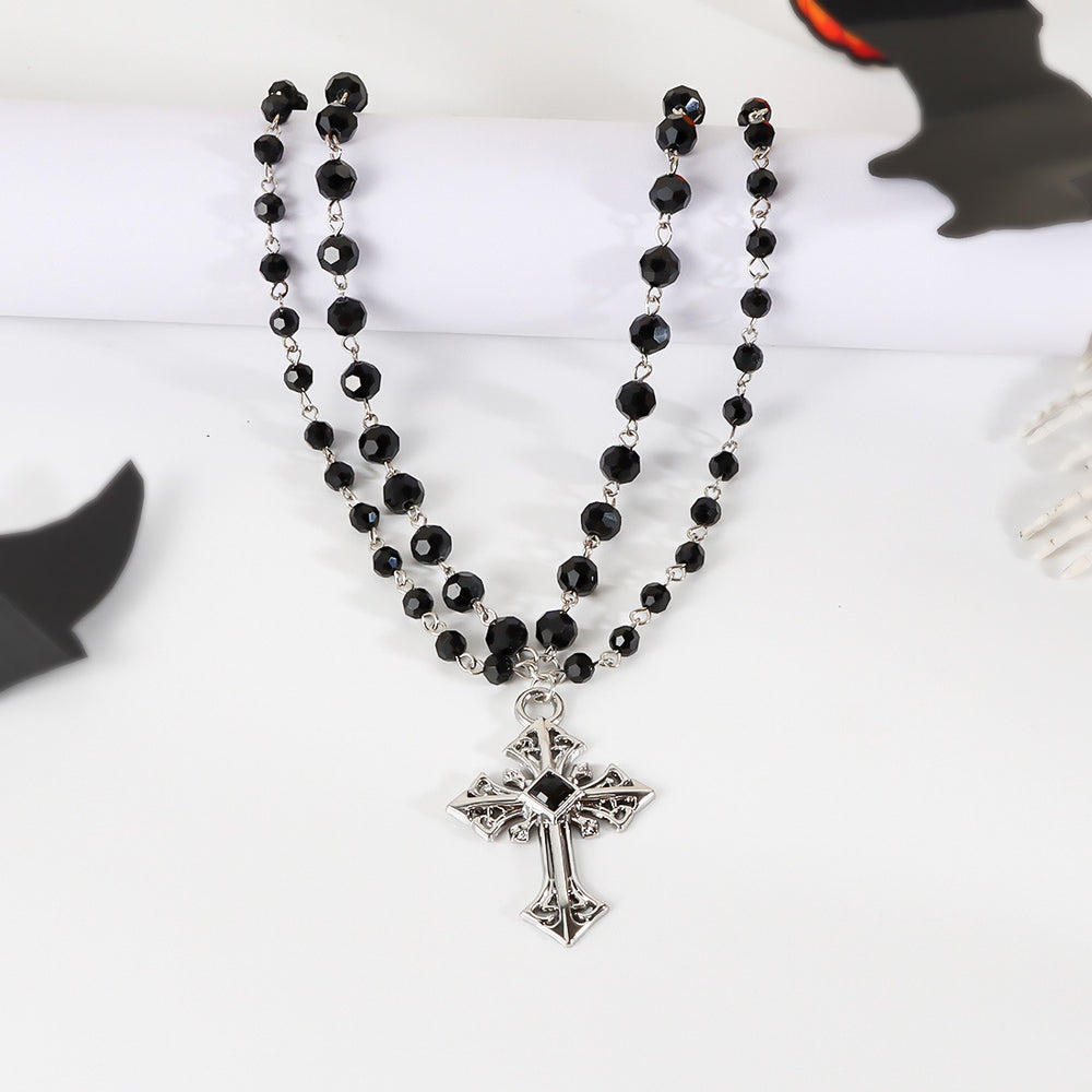 European American Dark Simple Fashion Hip Hop Punk Halloween Cross Beaded Necklace