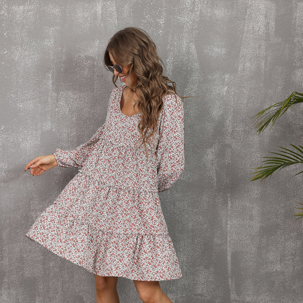 Our Halsey Floral Babydoll Dress is a transitional piece! Taupe. rust. wine. pale yellow. and charcoal florals detail this dress. Designed with a scooped neckline and billowy sleeves. Styled with the El Dorado Hat. Perfect Hoops. Chloe Mini Necklace. Compass Coin Necklace. Saint Slouch Boot. and Round Town Crossbody Bag.