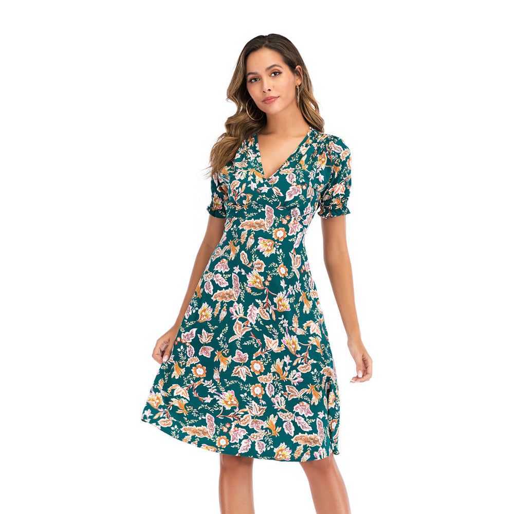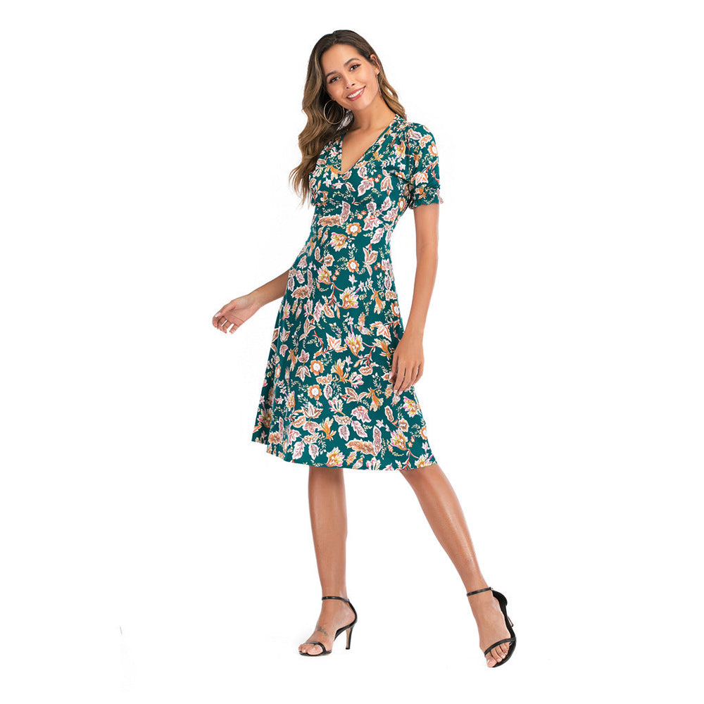 //Best Selling Print// Our Ivy Floral Tie Dress is 70's boho! This hunter green dress is decorated with black. blush. and mustard florals. Designed with front button closures and an adjustable waist tie. Styled with the Perfect Hoop Earrings. Chloe Mini Necklace. 5 Disc Choker. Gaia Coin Necklace. Simple Bangle Bracelet. and Finley Faux Leather Bootie.