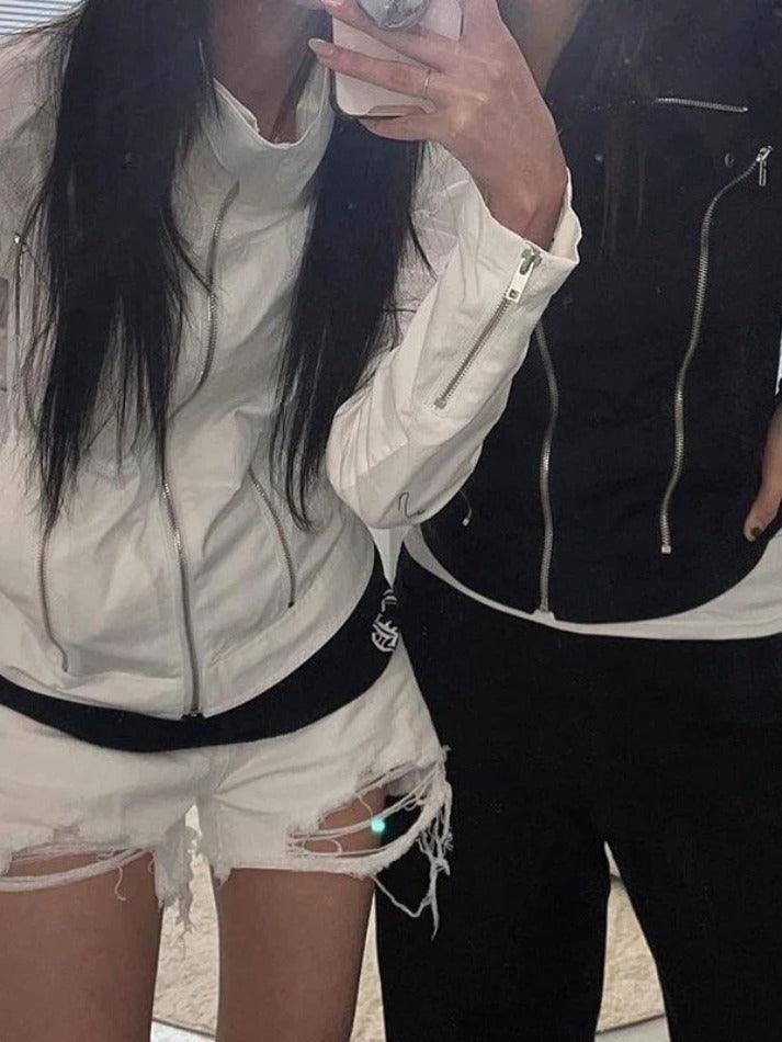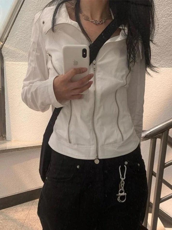 - Zipper details add a touch of trendy Y2K charm to this jacket.