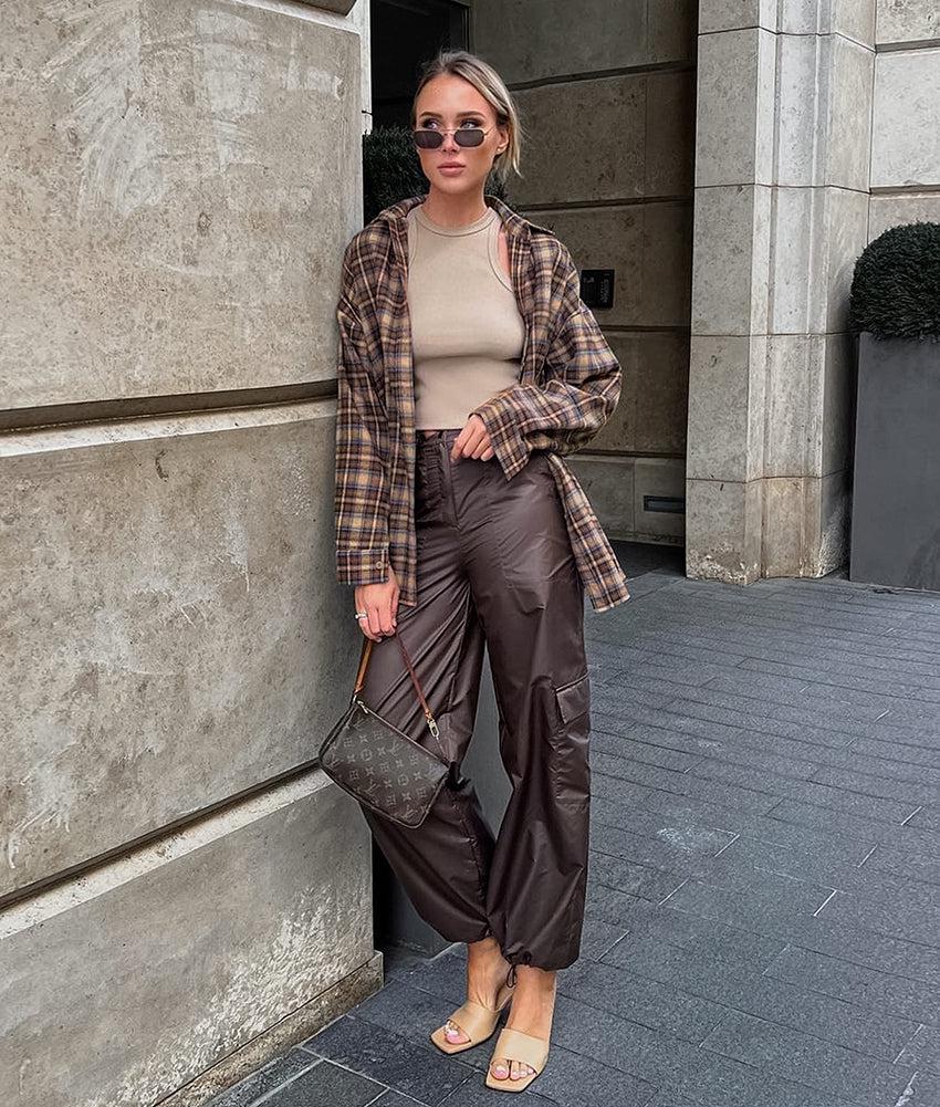 Evoking a timeless Dark Academia aesthetic. this brown plaid shirt is a fusion of comfort and style. Soft wool intertwined with cotton and polyester bestows a cozy feel. while the long sleeves and button front reflect scholarly elegance. Ideal with high-waisted trousers and a worn leather satchel.
