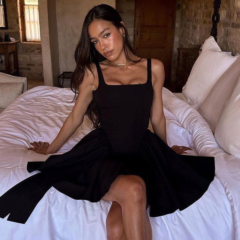 Solid Color Backless Stitching Lace up Short Girly Ruffled
