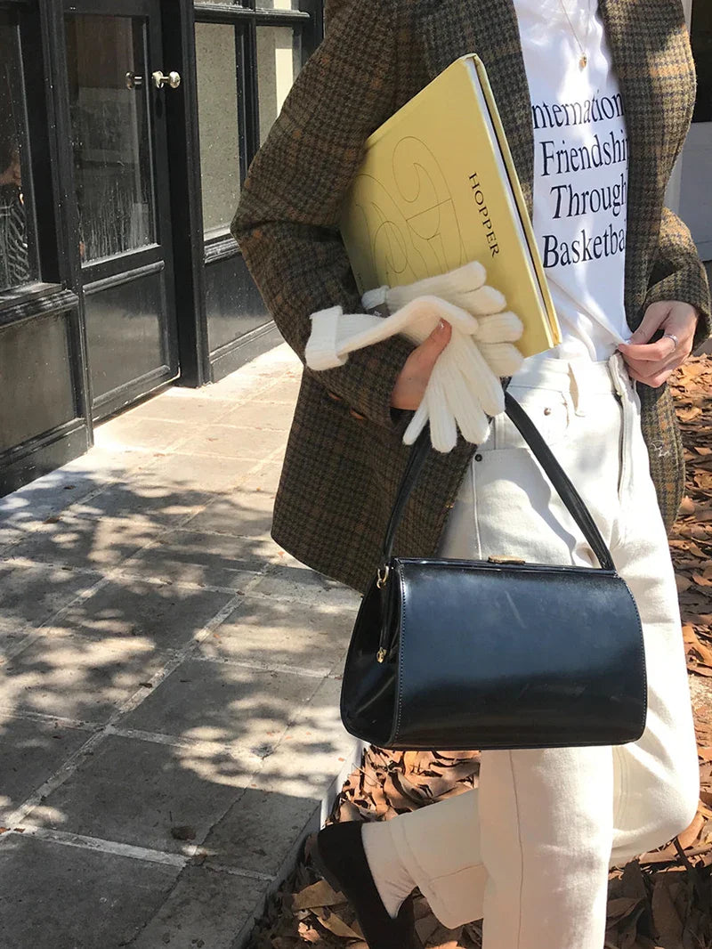 Increase quantity for Vintage Wool Blends Coats Women Plaid Woolen Jacket Elegant Commute Blazer Korean Long Sleeve Outerwears Winter Ladies Overcoat