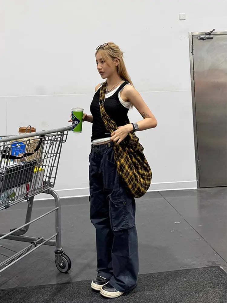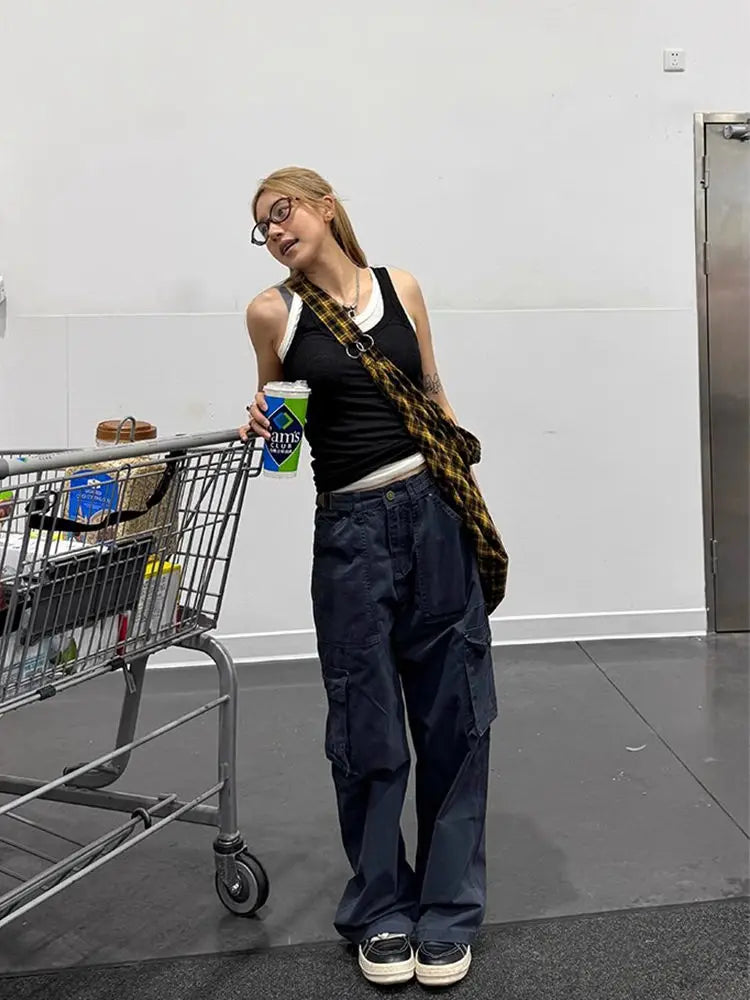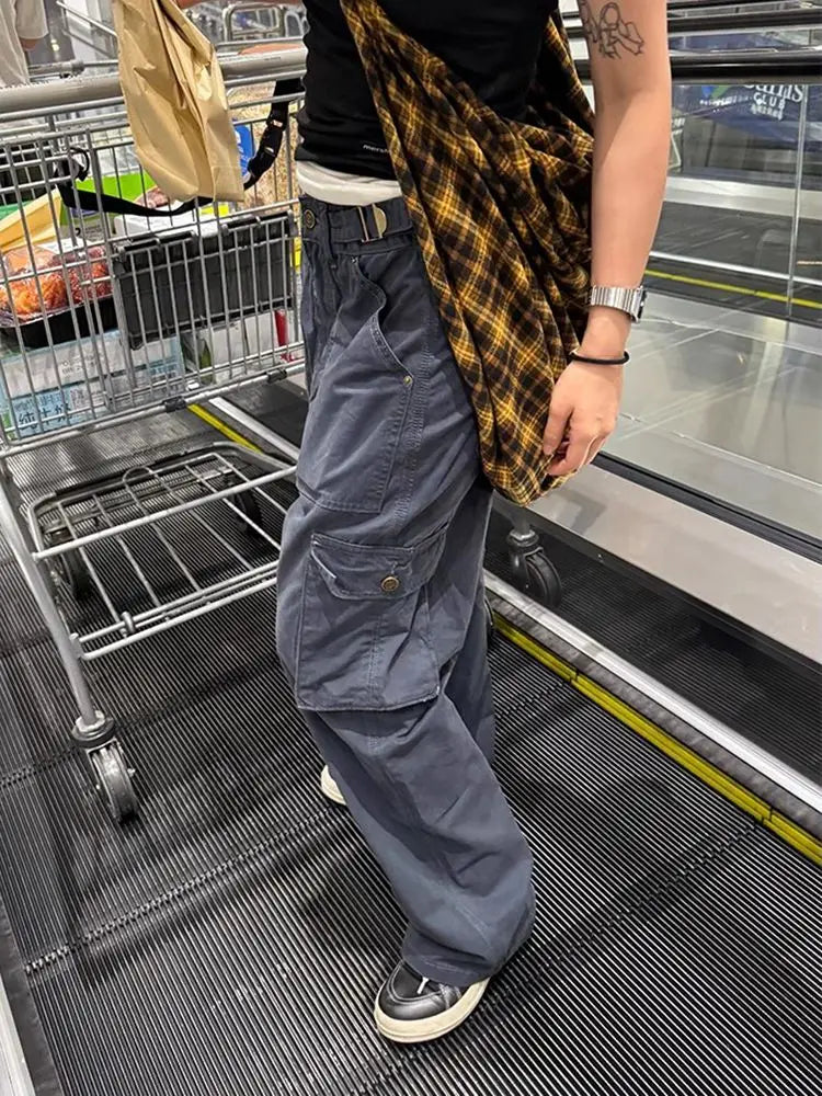 American Retro Multi Pocket Jeans for Women Y2k High Waist Loose Wide Leg Pants Early Autumn New Straight Trousers