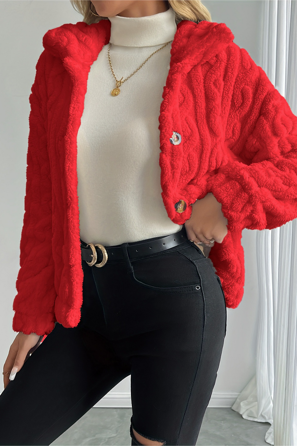 • Neckline: Lapel Collar