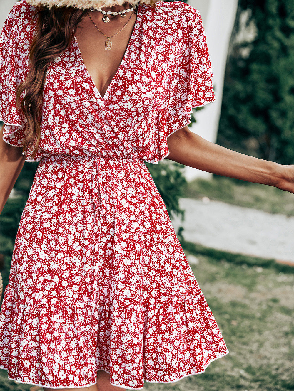 - Split Neckline with Neck Tie
