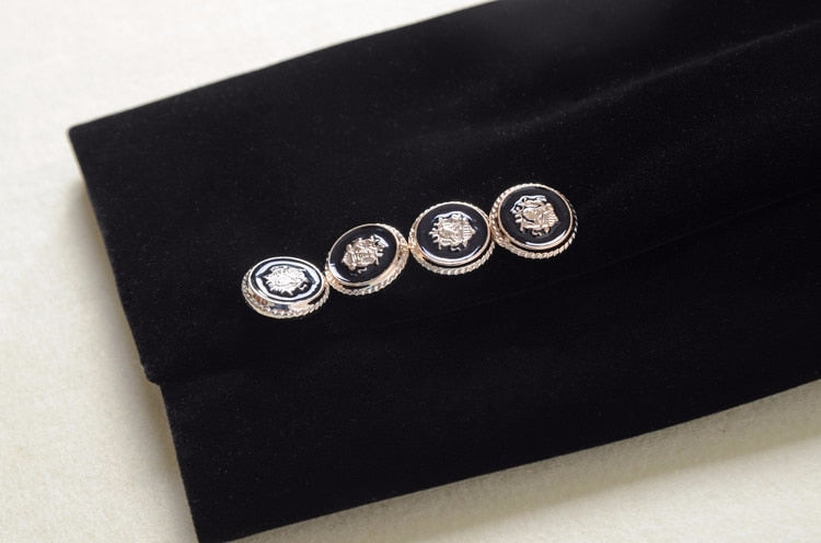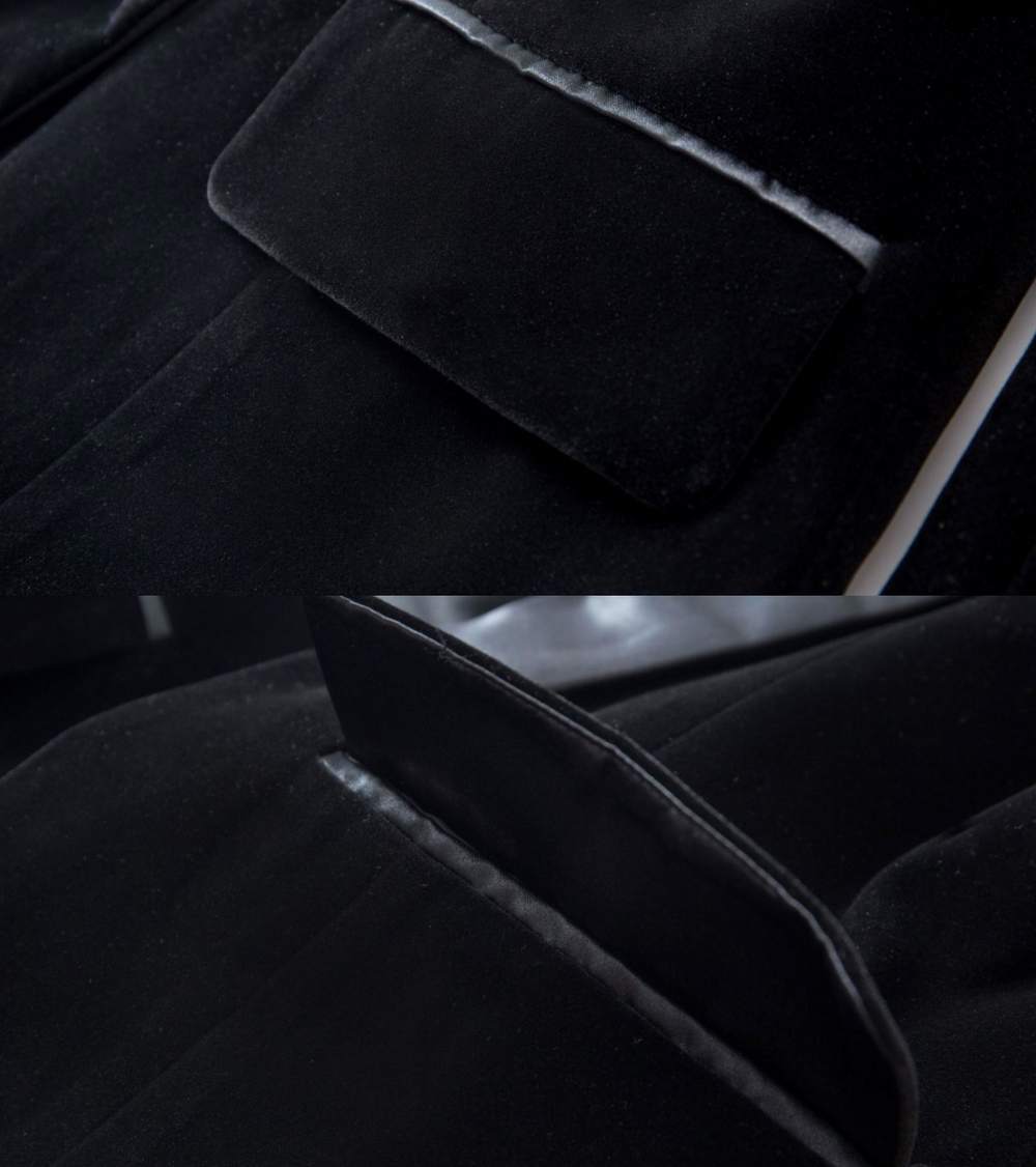 VELVET RUNWAY BLAZER has chic design, crafted from gorgeous velvet fabric. Decorated with satin that gives elegant look.