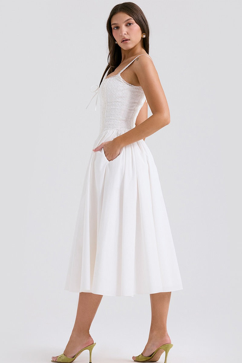 White Lace Spaghetti Strap Midi Dress