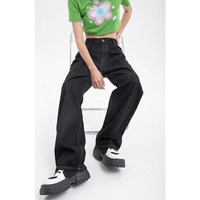 KittenAlarm - Woman's Jeans High Waist Summer Wide Leg Denim Trouser Baggy Street Chic Design Ladies Casual Black Vintage Straight Jean Pants