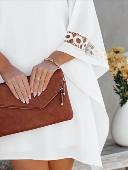 Loose Solid One Shoulder Lace Panel Dress Ins Street