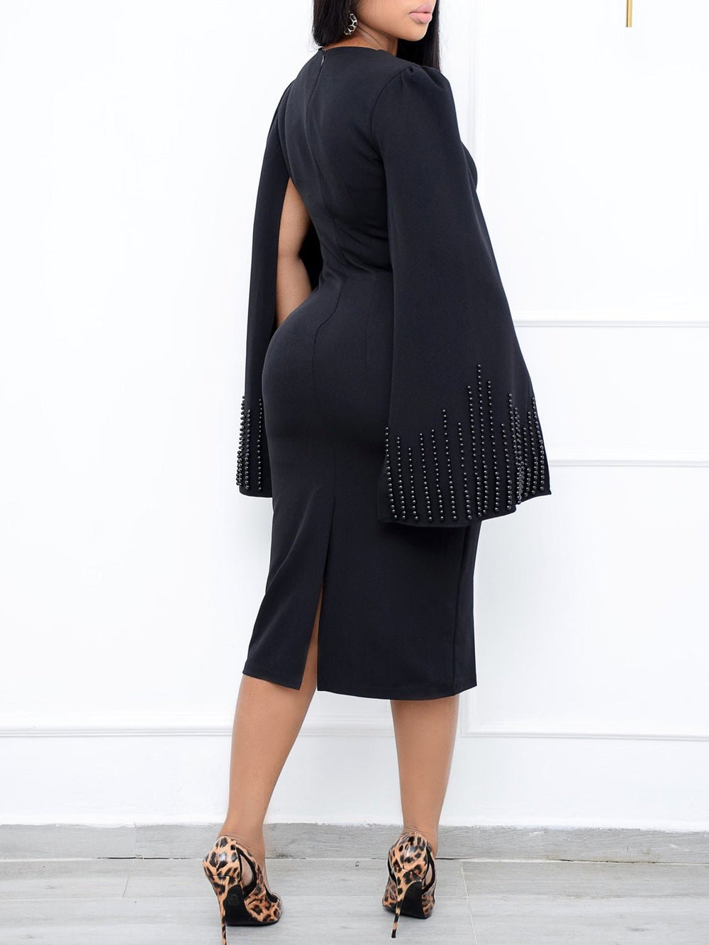 Square Neck Beaded Cape Twist Slim Dress